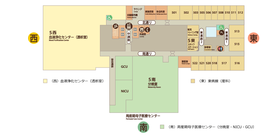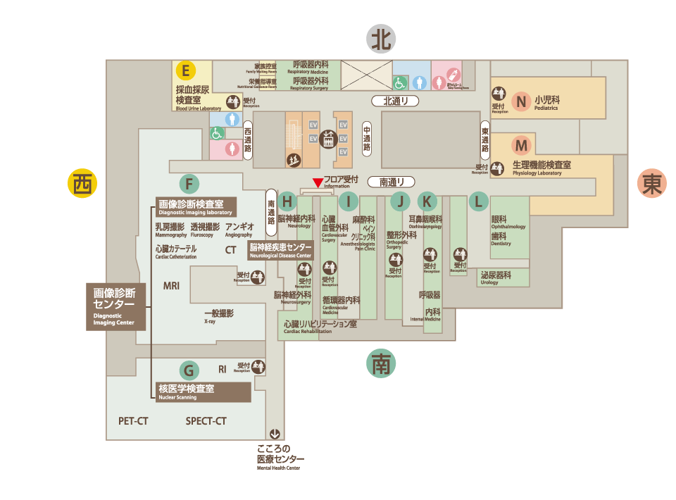 総合医療センターは、10フロアで構成されています。 大きく分けて、1~3階までが外来、処置・治療室、4階が手術、集中治療室、5階~10階までが病棟となっています。 詳しくは以下をご覧ください。